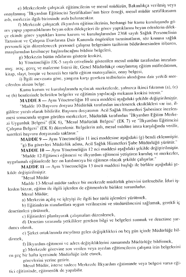 (18-03.2004 TARİH VE 25406 SAYILI İLKYARDIM YÖNETMELİĞİ)
